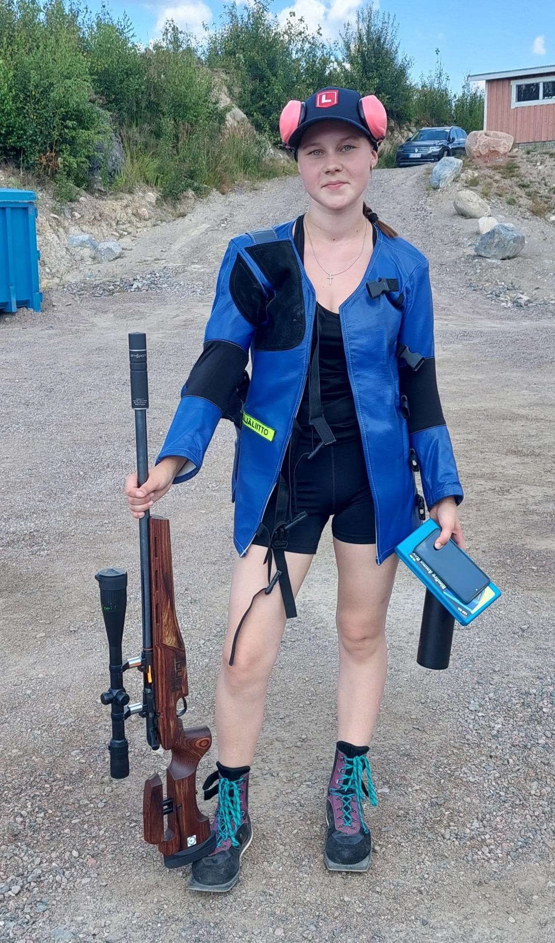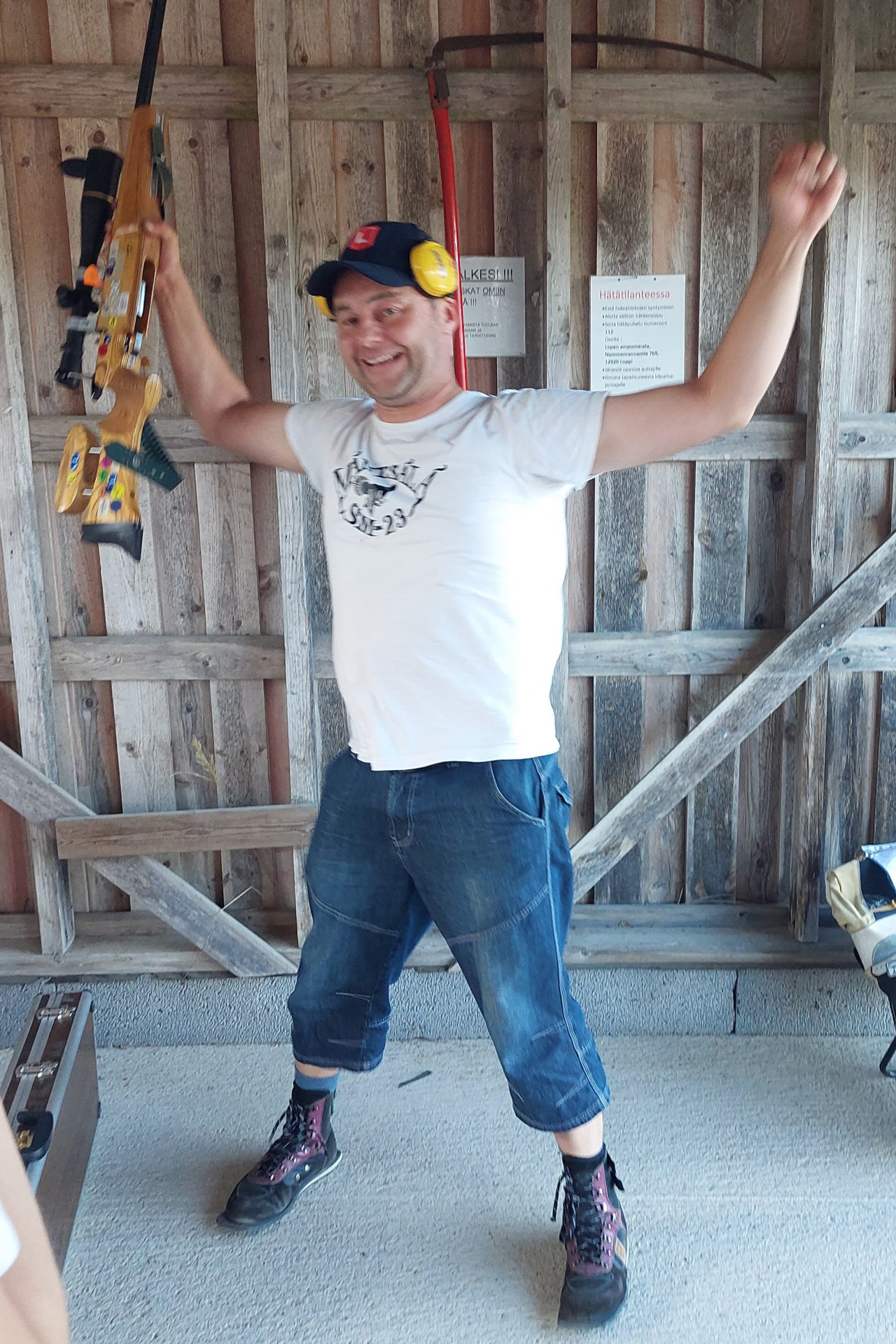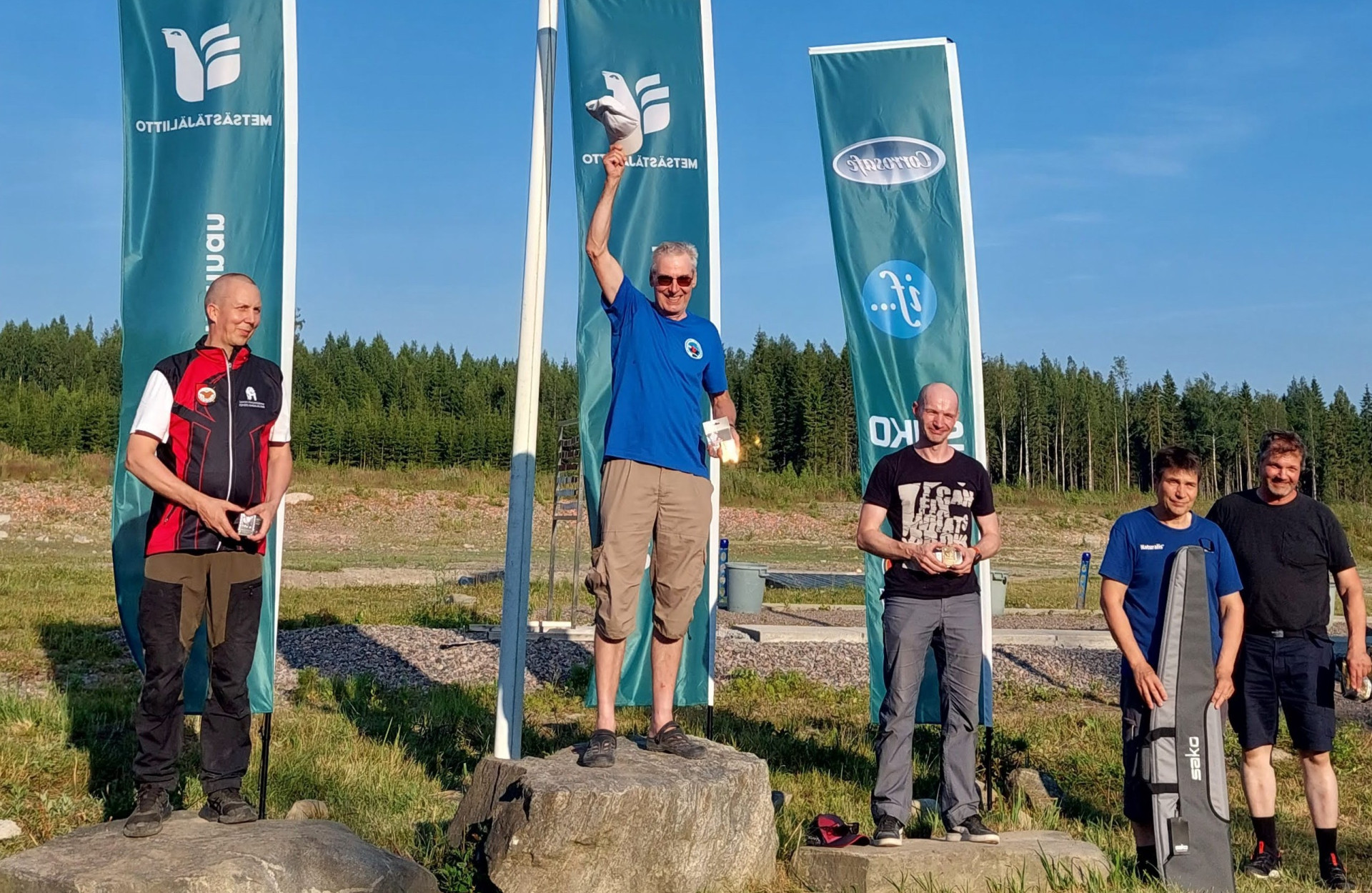 Juha Sallinen tuulettaa metsästysluodikon mestaruutta Y sarjassa. Lisäksi Juha sai hopeaa pienoisluodikossa.