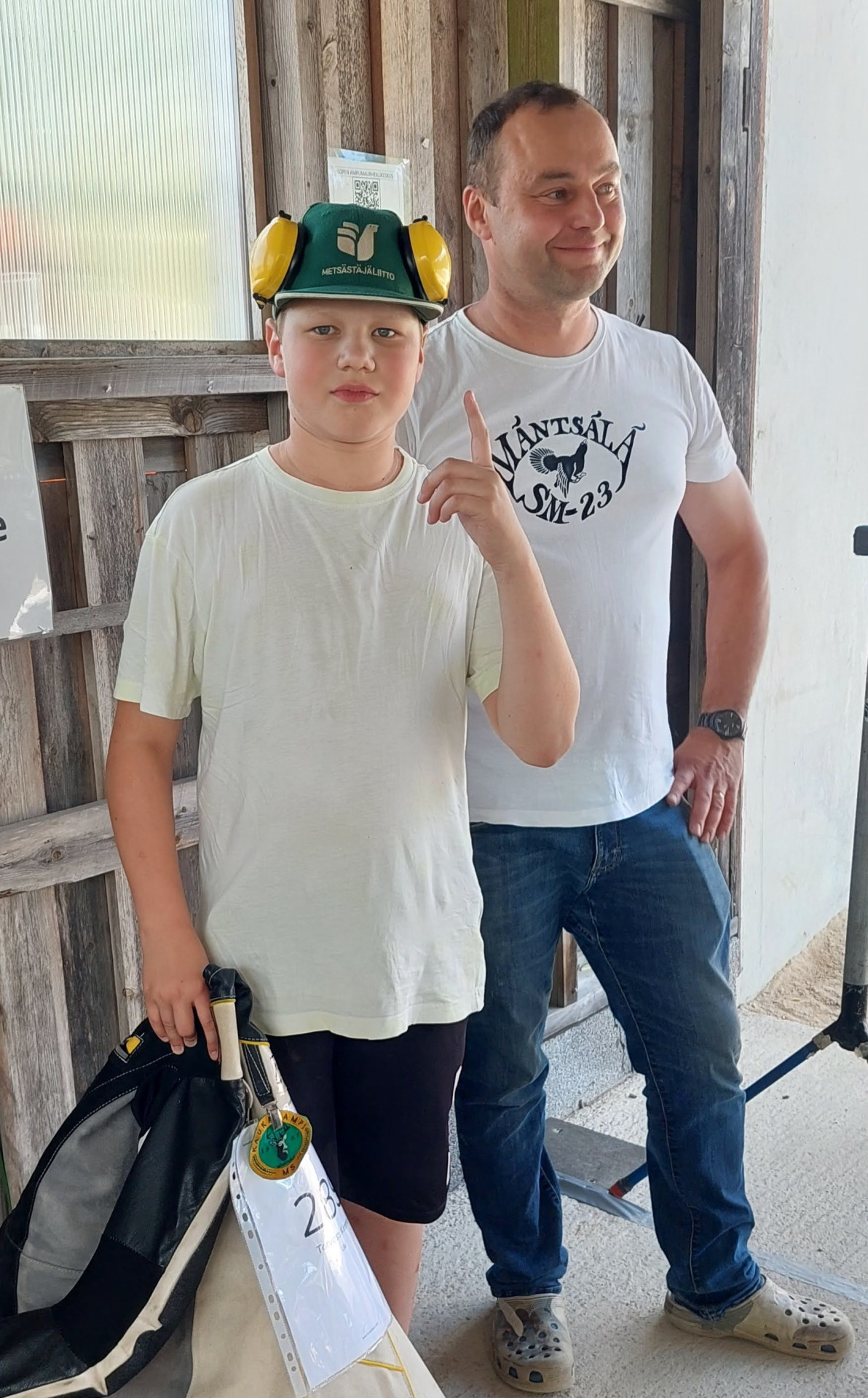 Kuvassa Kimmo Torvasti S13 sarjan pienoisluodikon Suomen mestari isänsä Juha Sallisen kanssa, joka puolestaan voitti Yleisessä sarjassa metsätysluodikon mestaruuden.